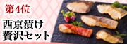 特徴の有る、二つの魚を詰合せ・・・ なにわ漬け処大三のからすかれい西京漬けとみなみかごかます西京漬けを各一切真空包装で詰合せしました。 ※こちらの商品は化粧箱に入れてお届けいたします。